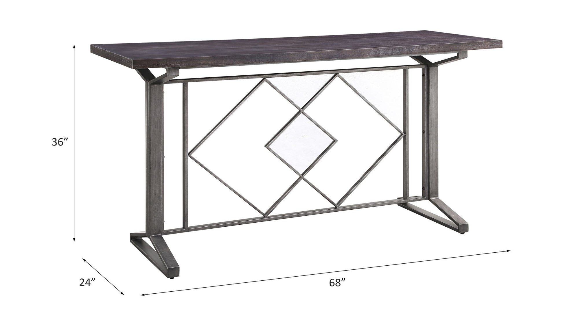 Transform a boring traditional dinning room into a industrial home bar that allow your friends to eat and drink to their heart's content. The Evangeline Counter Height Table employs a sense of industrial rawness in every detail, including distressed textures, metal structure, minimalistic design. The rectangular wooden table top is finished in a salvaged brown to form a weathered surface. Below the table top is a geometric metal base, creating a striking silhouette to makes a bold statement. Give your dining room an instant makeover with The Evangeline Counter Height Table.