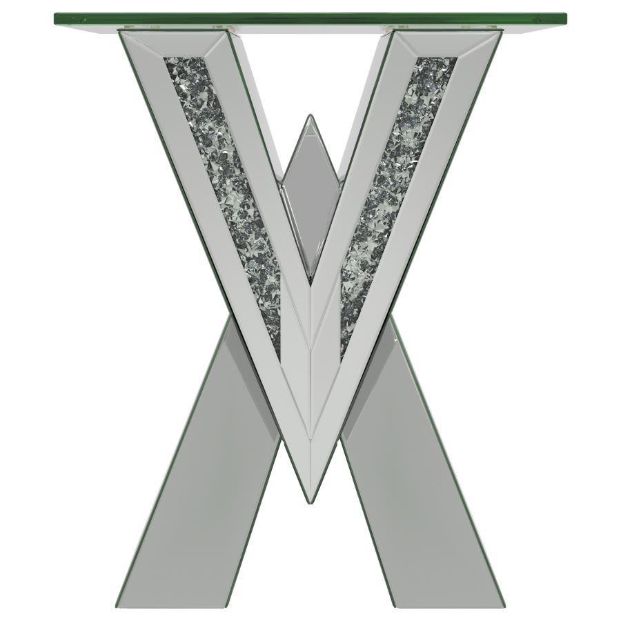 Taffeta - V-Shaped Mirrored Entryway Console Table - Silver